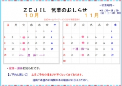 10月 11月営業カレンダー〜盛岡 滝沢市 メンズカット パーマ シェービング〜