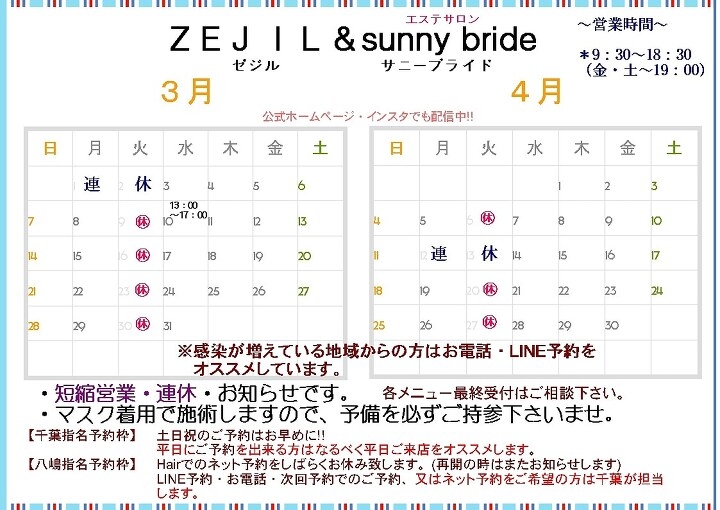 ・緊急事態宣言、まん防地域、県外、渡航履歴の方は2週間空けてのご予約を ご協力よろしくお願いいたします。