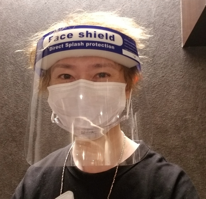 シャンプー台での顔そりなどはマスク2重&フェイスシールドをつけて施術しております。お互い感染に気をつけていきましょうね。