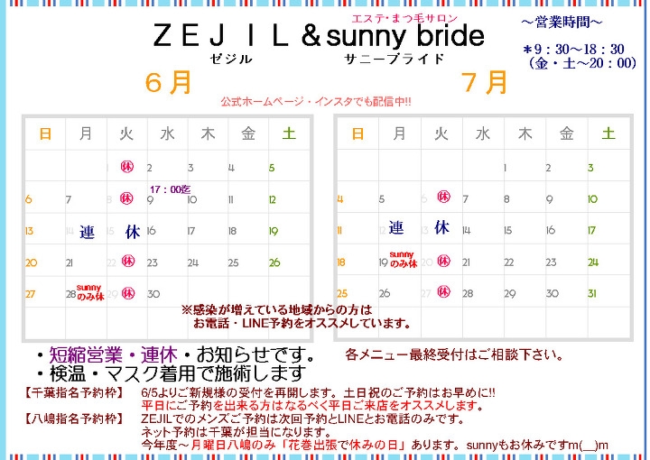 6~7月の営業 ご新規受け付け再開中
