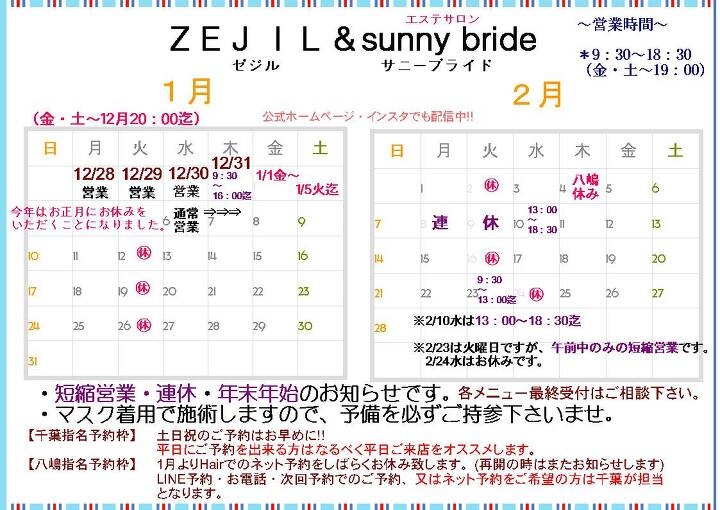 1月2月の営業 明けましておめでとう~岩手県 盛岡 滝沢市 メンズ 髪型 バーバー ツイストパーマ フェード 美容室 サニーブライド まつ毛パーマ プランプラッシュリフト ブライダルエステ