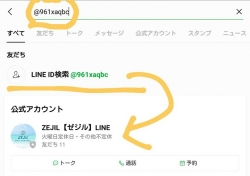 ご自分LINEホーム画面の上の検索に@マークを入れるとカテゴリーがありますので、「すべて」or「公式アカウント」のところで検索をすると「ZEJIL・LINE」が出てきますよ(*^-^*)