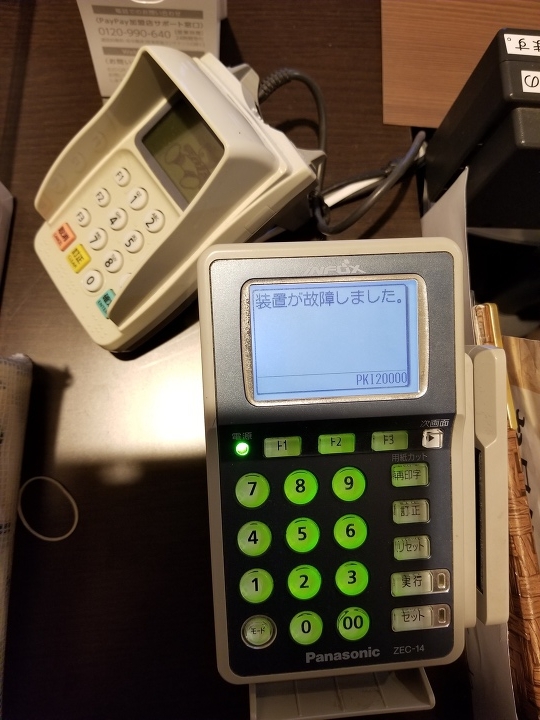 只今クレジットカード機の不具合でクレジットのご利用かできません。