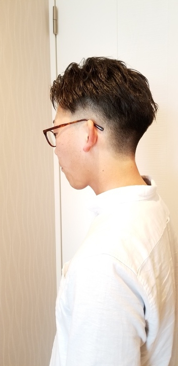 激イメチェンスタイルでしたね。いつもスパイラルパーマでしたが、、自然オールバックのフェードわー気に入っていただけたみたいで良かったです。