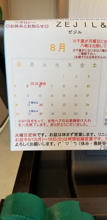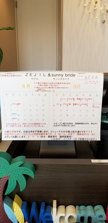 8月の営業と9月リニューアルオープンについて