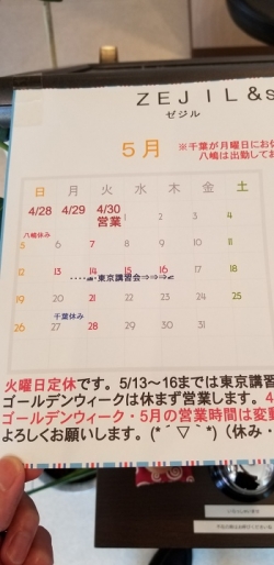 また、今年から出張の為千葉が月曜日休日になる事ごございます。