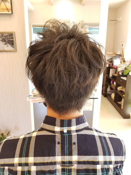 生えグセは治りませんが、生かしたデザインでパーマっぽくしました。