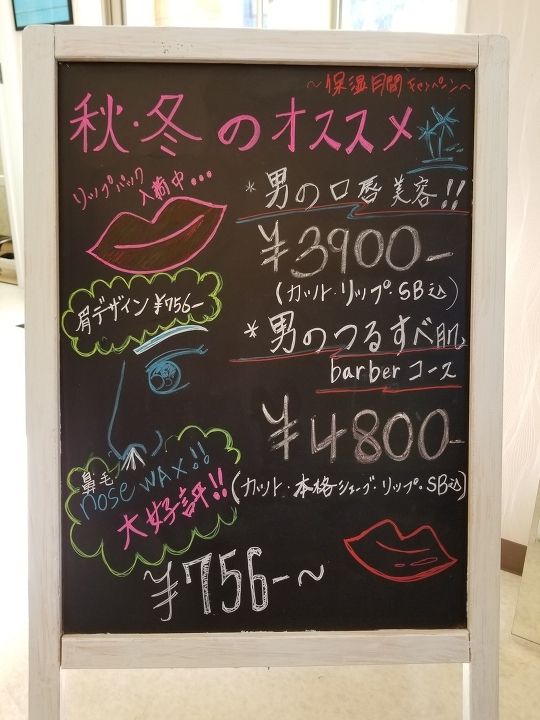 男性のサイドメニュー~バーバーショップ 岩手 滝沢 盛岡 眉カット 鼻毛ワックス リップパック 顔そり~
