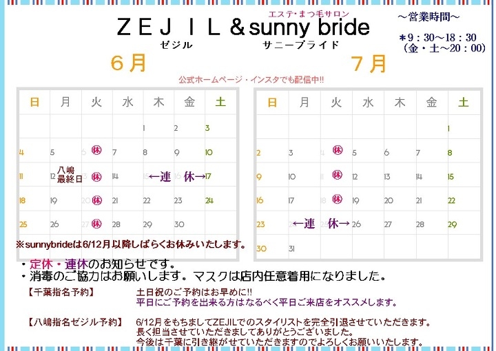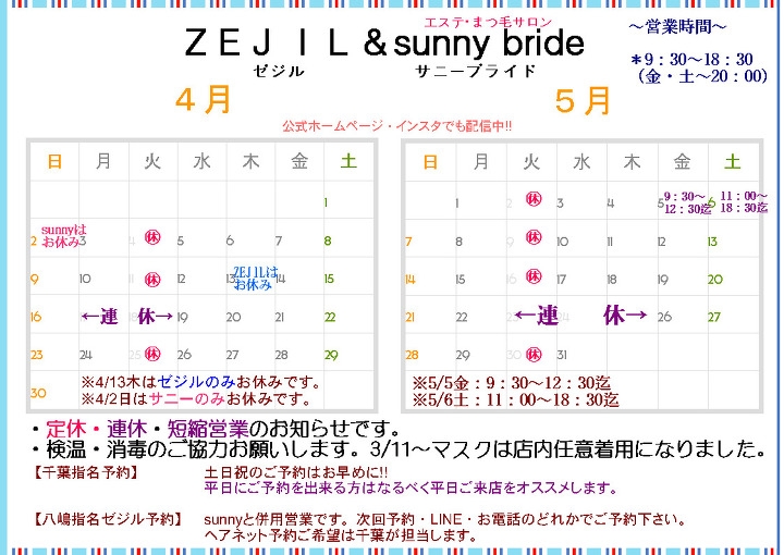 火曜定休で所々、連休ありますのでご確認いただければ幸いです。